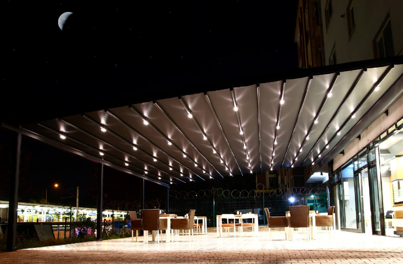 CLASSIC Pergola is a product that always attracts attention with its stylish and useful features. Pergola system that can be used easily in any place. It is a frequently preferred product with its robustness. Electrostatic Powder Paint is used in this product with many color options. Since the fabrics are made by stretching by 4, they do not stretch or sag and do not hold dirt. 90 km of wind per hour and an average of 20 cm of snow resistant to thickness. Cast lug legs are waterproof, light cables are made of silicone and 100% copper.