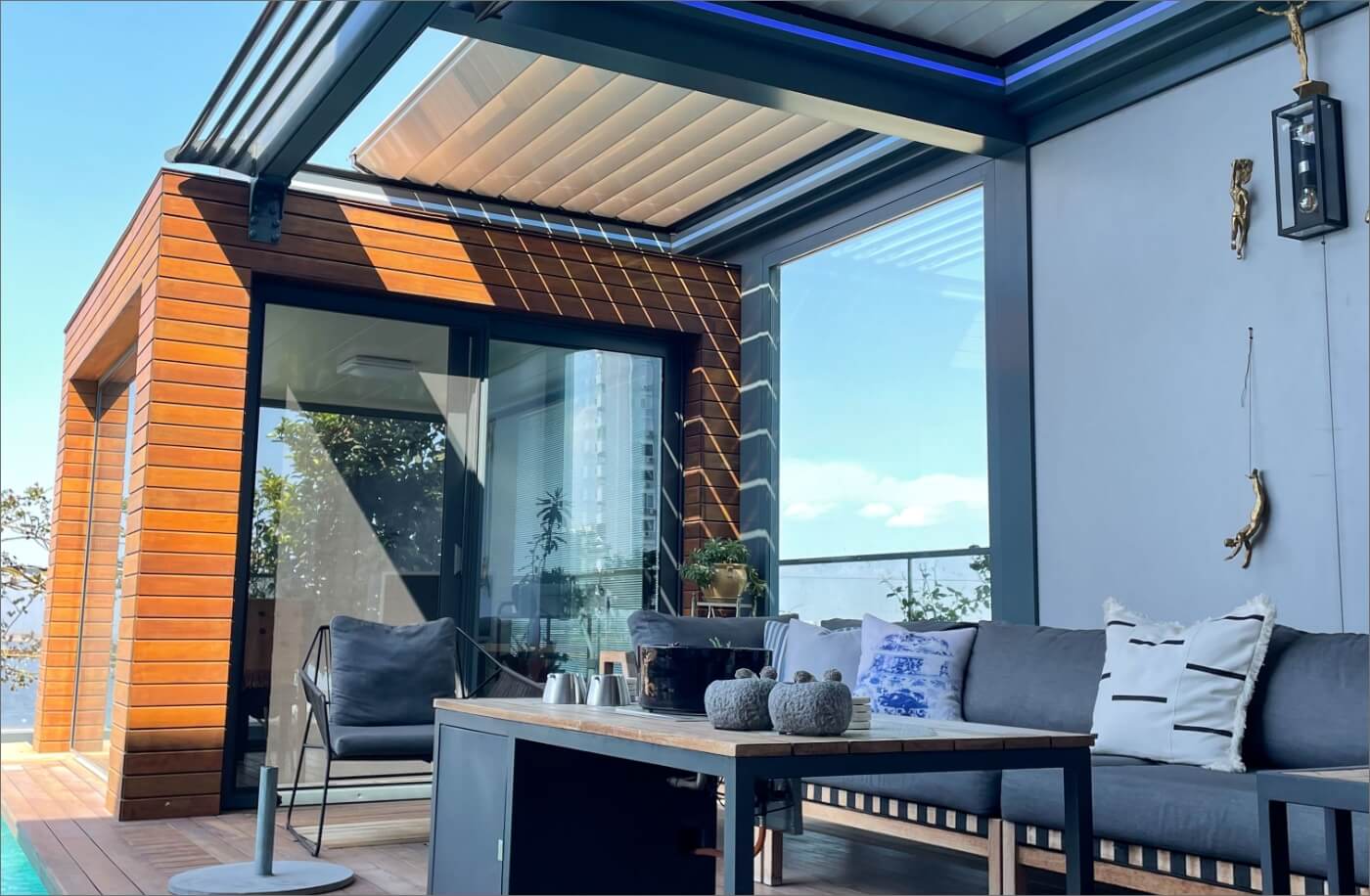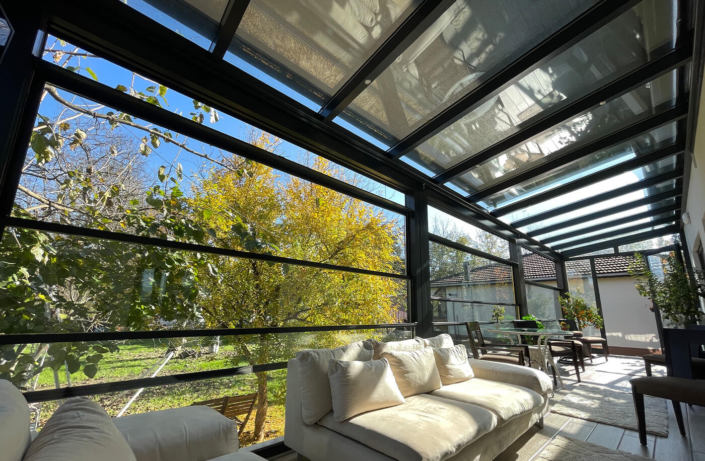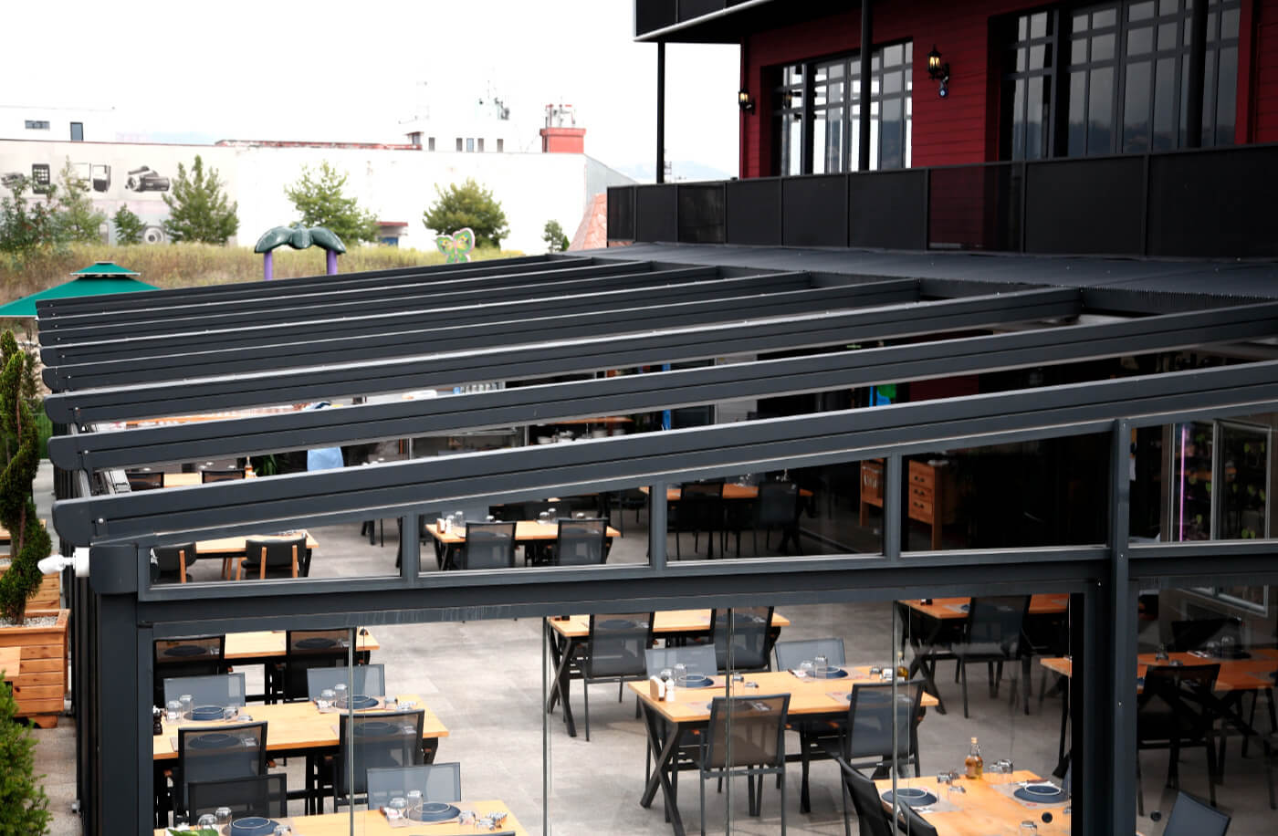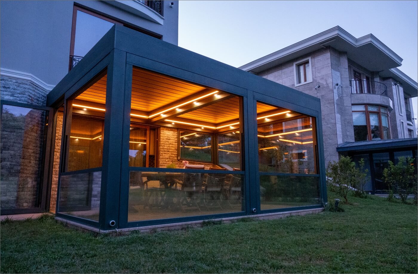Guillotine Glass Systems is the solution that Mint Outdoor AS brings in particular to glass systems integration to pergola systems. However, with a flexible and adaptable construction structure, you can safely apply any area you need.