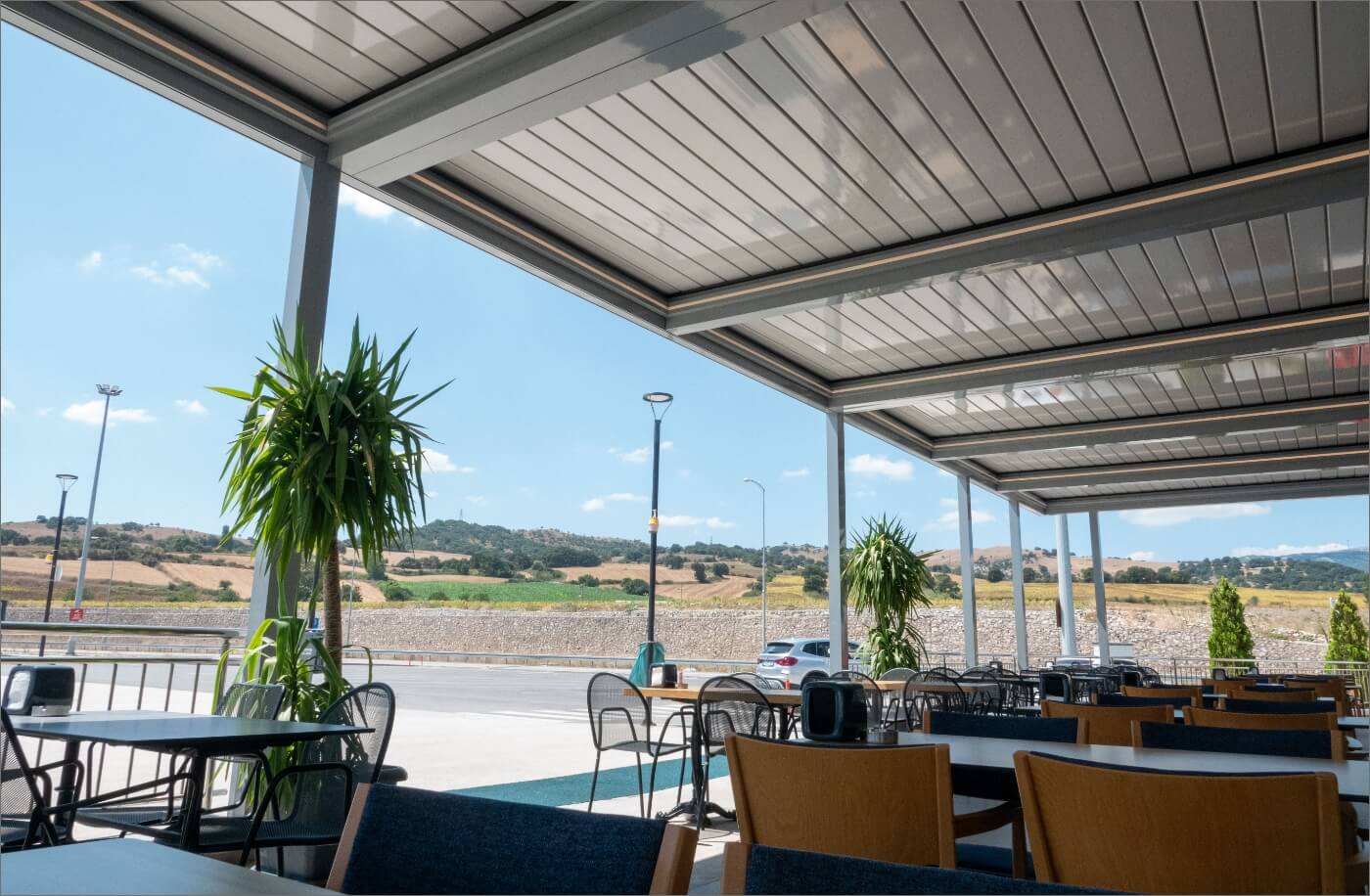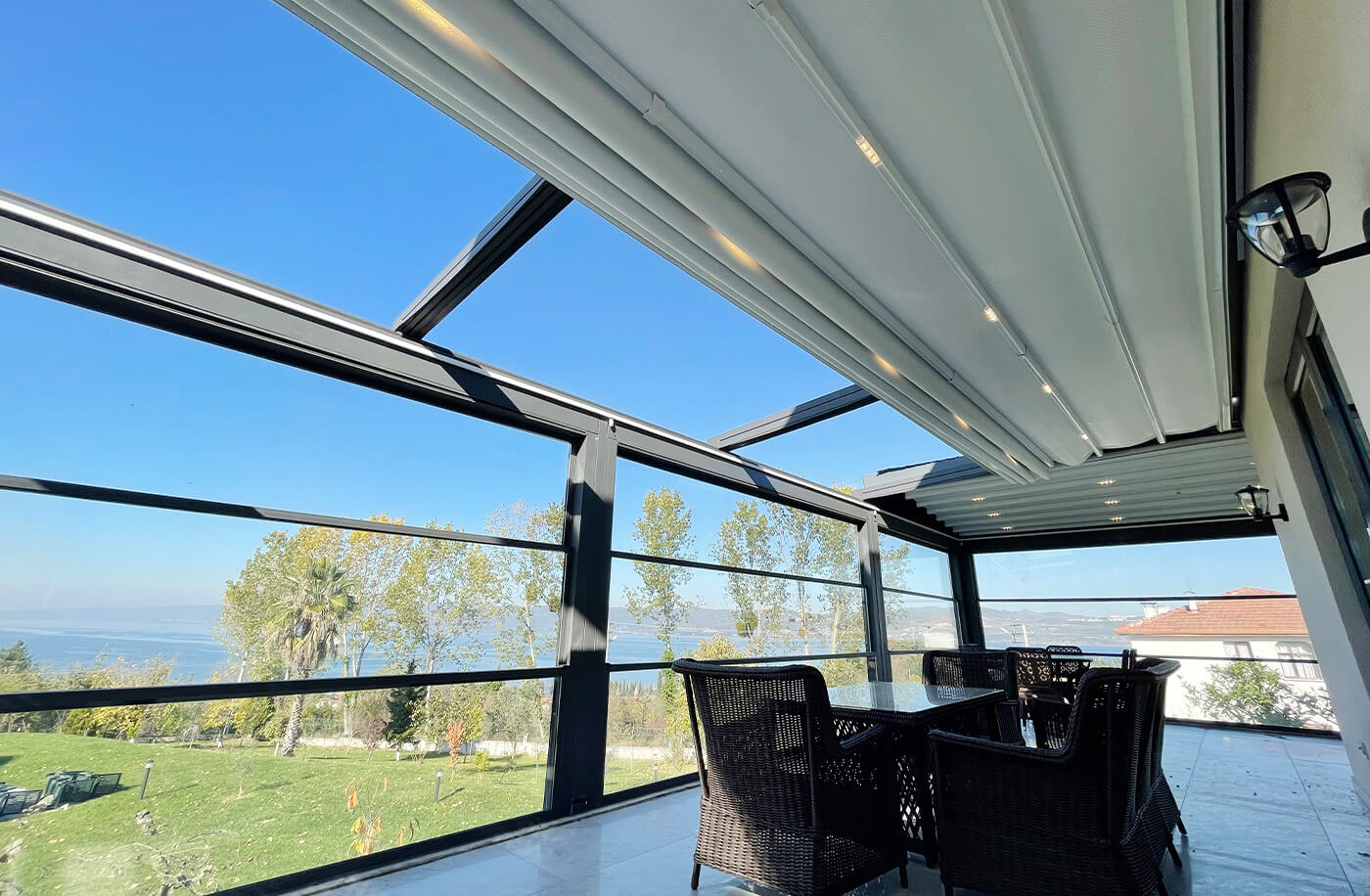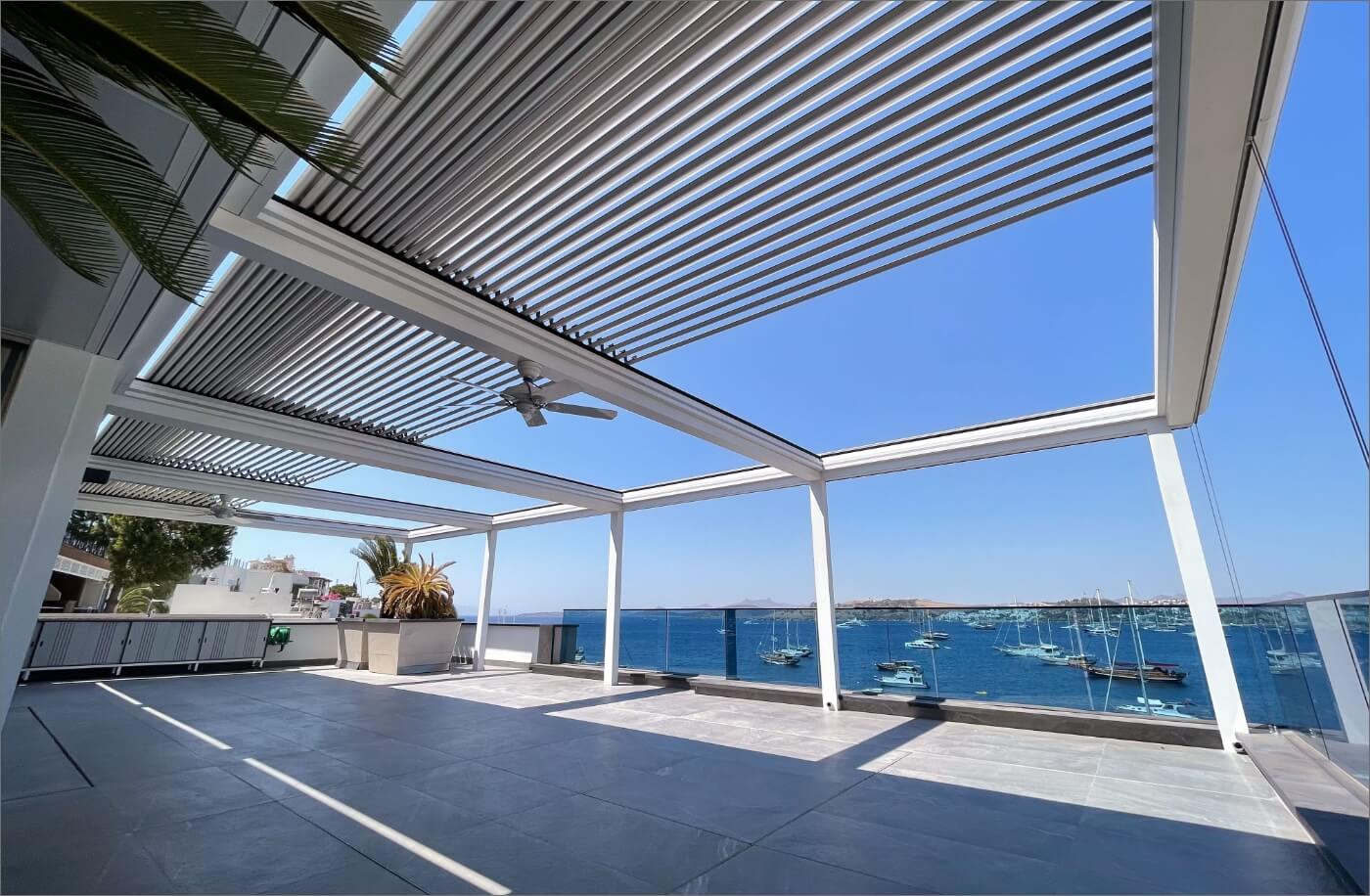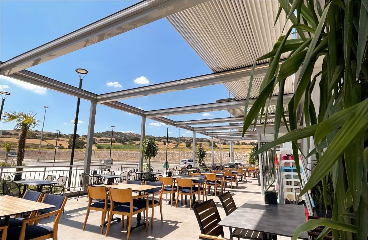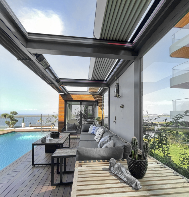 Closed, semi-closed, or open ways of use will all make a matchless contribution to your quality of life. In our SkyCloud product, the aluminum panels that form the ceiling and open with angles between 0 and 55 degrees will provide you with unlimited freedom of use.