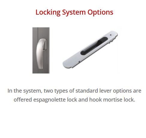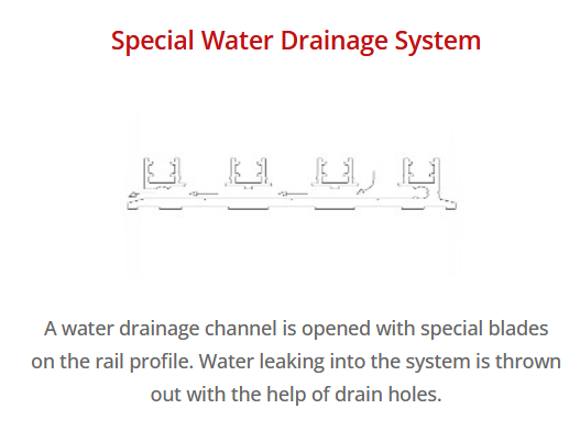 Specially designed rail systems enable easy movement for the opening and closing directions. In the system, two types of standard lever options are offered espagnolette lock and hook mortise lock. A water drainage channel is opened with special blades on the rail profile. Water leaking into the system is thrown out with the help of drain holes.
