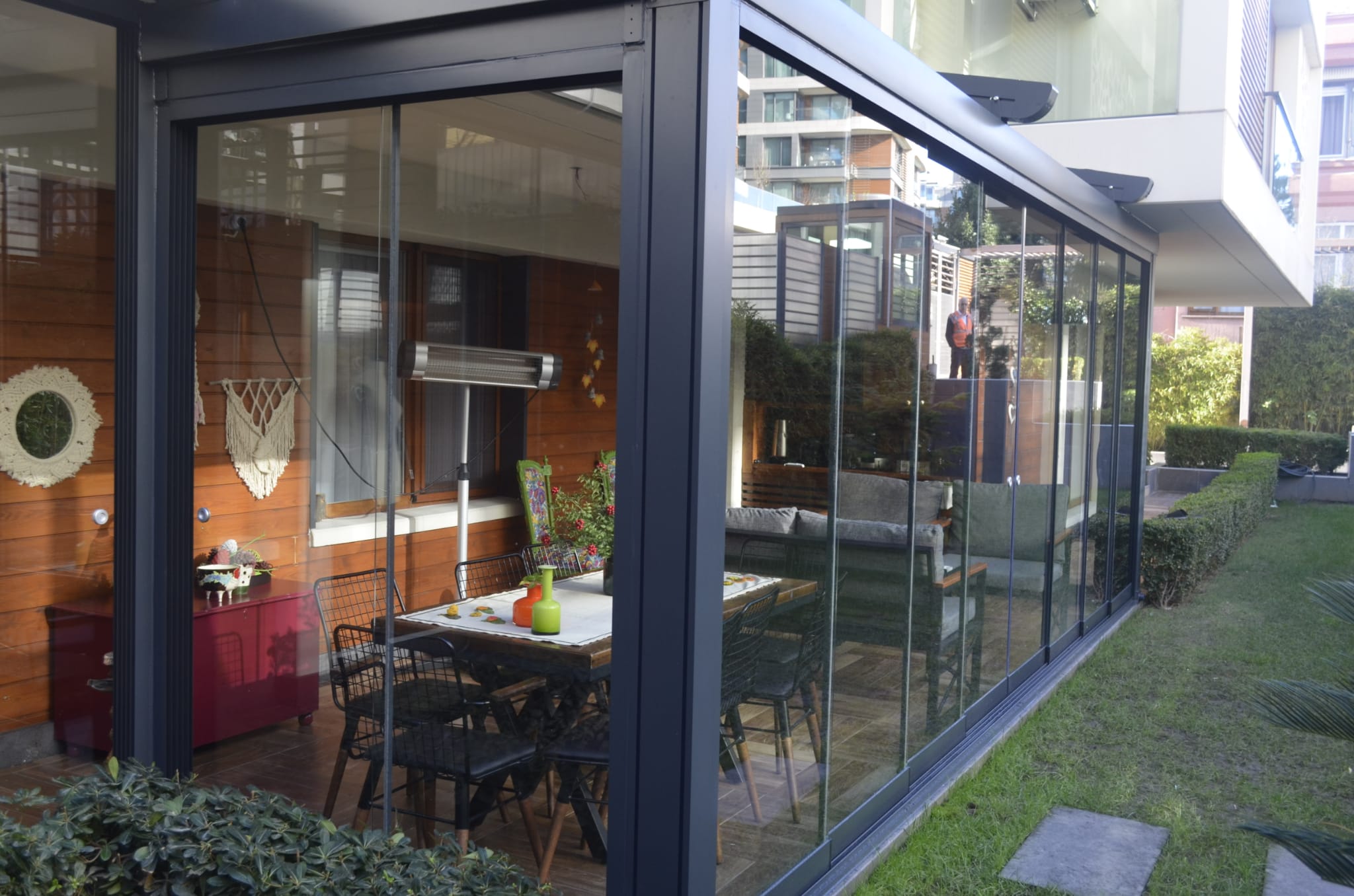 Glass Systems is a manually controlled glass system with a horizontal axis. Our Sliding Systems are complementary in terms of both design and functionality, specially designed for use in our pergola products. However, with a flexible and adaptable construction structure, you can safely apply any area you need.
