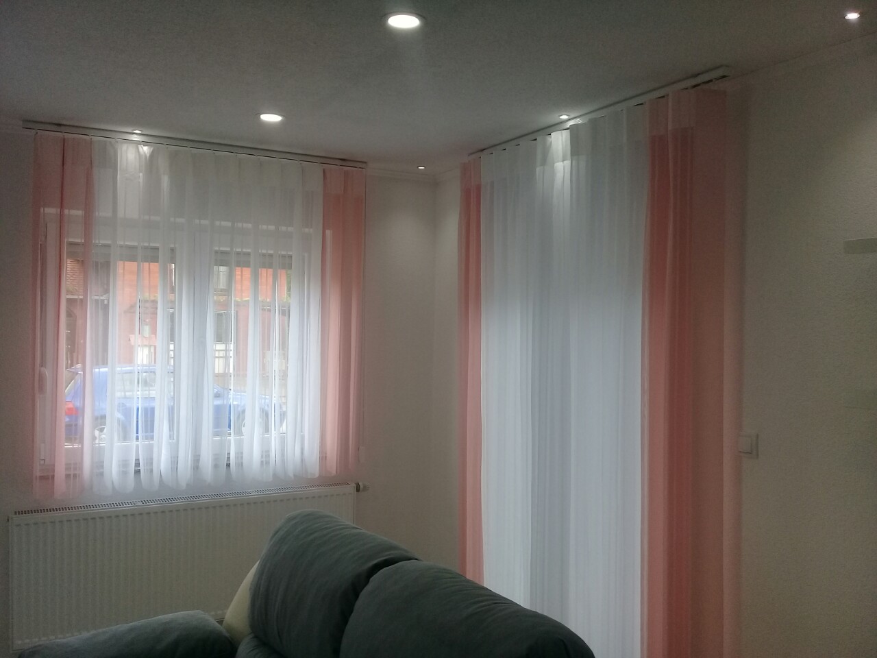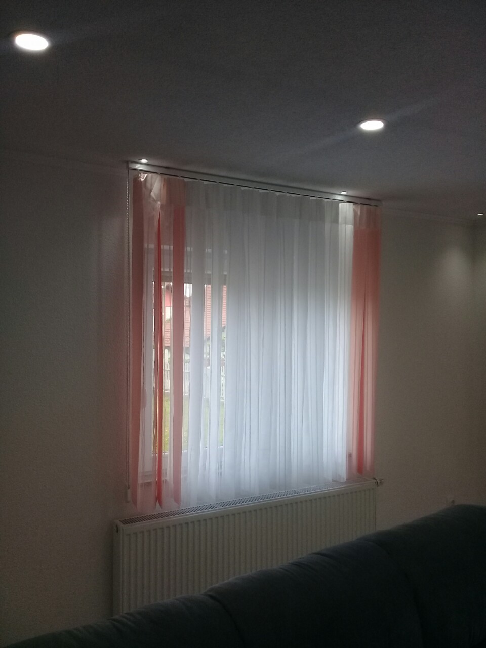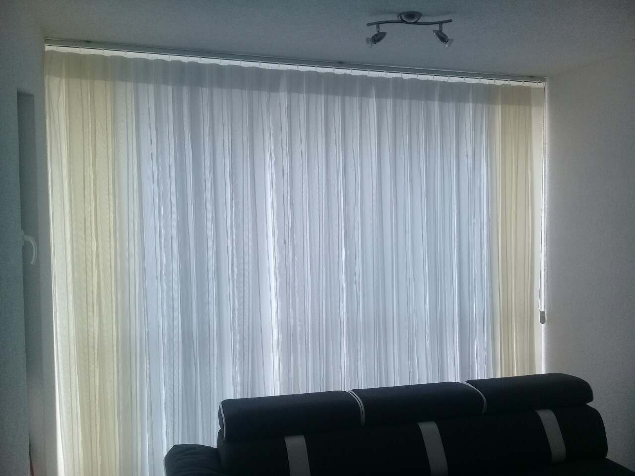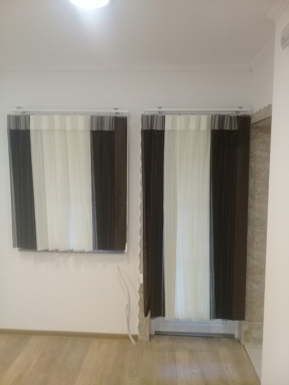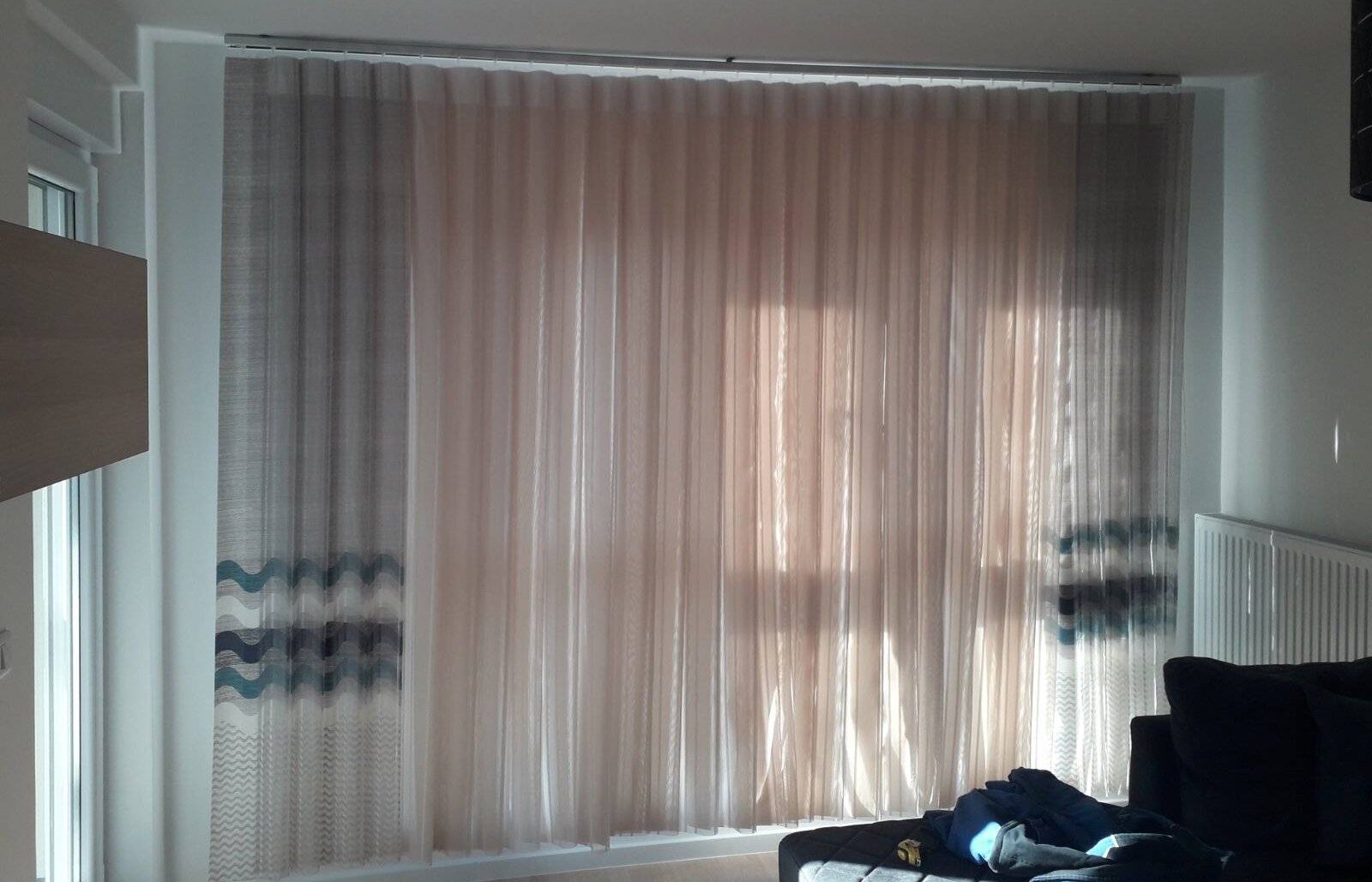 The curtains are made of vertical strips connected by a mechanism with the ability to rotate the strips due to the need to adjust light penetration and visibility.